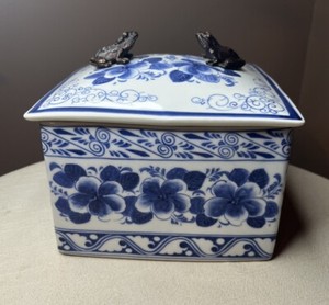 SELTENE Maitland Smith LTD Schatzkiste mit Messing (ich glaube) Fröschen blau & weiß SCHÖN EUR 245,98
