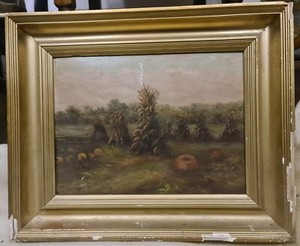 Antik Kunst Landwirtschaft Gemälde Öl auf Karton Hamilton auf Rückseite gerahmt Maße 42 cm