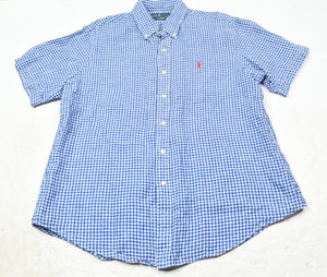Ralph Lauren Leinenhemd Herren XL Blau Gingham Kurzarm Button-Down Klassiker