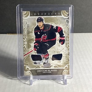 2024-25 UD Artifacts Gold Materials Jaccob Slavin /299 #21 Carolina Hurricanes
