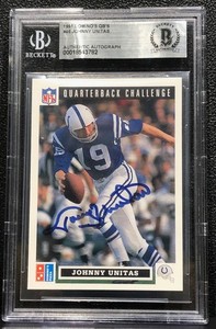 1991 UPPER DECK JOHNNY UNITAS AUTO, DOMINO'S PIZZA QUARTERBACK CHALLENGE, BGS