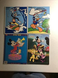 Disney Characters Wooden Puzzles - Goofy, Donald, Mickey - Lot Of 4