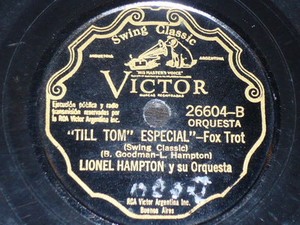 JAZZ 78 rpm RECORD Victor LIONEL HAMPTON Y SU ORQUESTA Foxtrot ARGENTINA