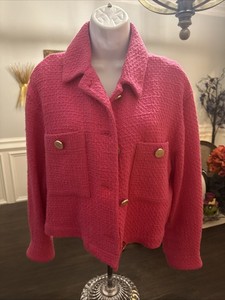 Zara Damen Struktur Web Blazer Jacke Overshirt L Rosa Fuchsia 8495/150
