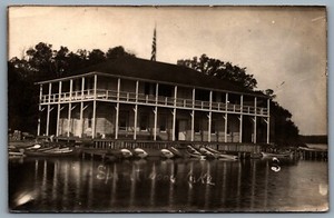 Postcard RPPC c1909 Spiritwood Lake ND View of Tuckers Pavilion Canoes