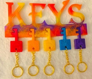 Keyholder holds 5 keys 8”x5” hangs on your wall to hang your keys on multicolors