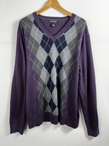 Banana Republic Herren XL Pullover extrafeine Merinowolle Argyle lila V-Ausschnitt