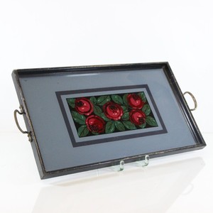Vintage Tablett aus Holz/Glas DDR 60/70er - Antikes Tablett mit Rosenmotiv