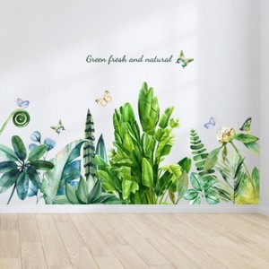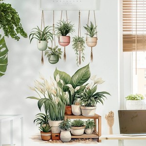 Wandaufkleber Grünpflanzen & Hängeampel Wandtattoo Botanik Wandsticker Blätter