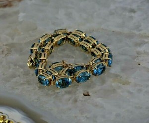 14K Yellow Gold 10 ct Blue Topaz Bracelet 23 Stones 7" length, Circa 1990