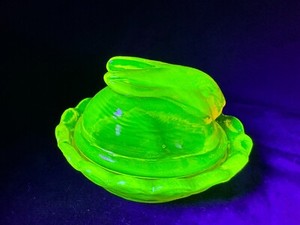 Uranium Glass Covered Butter Dish Lords & Ladies Davidson Pearline Vaseline Glow