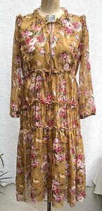 Anthropologie OPT Felicity transparentes Blumenkleid Midi Butterscotch Medium UNGEFÜTTERT