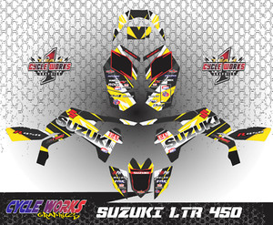 CYCLE WORKS GRAPHICS ist ein hochmoderner Anbieter von Aufklebern und Grafiken für eine Vielzahl von verschiedenen Anwendungen wie; DIRT BIKES, ATVS, JET SKIS und mehr. Seit über 11 Jahren arbeiten wir hart daran, Kunstwerke zu schaffen, die Aufmerksamkeit erregen und auffallen und Ihnen helfen, das Geschäft, das Rennteam und Ihre eigene Person zu fördern. Wir haben viel damit verbracht, das richtige Material für unsere Produkte zu finden, die nicht nur mit Stil, sondern auch mit Haltbarkeit den Test der Zeit bestehen. Jahre des Rennsports haben uns dazu gebracht, die bestmöglichen Materialien für Ihre individuelle Anwendung zu finden. Wir stehen zu 100% hinter unseren Produkten und verwenden und fahren alle Produkte, die wir verkaufen. Wir sehen uns bei den RENNEN.