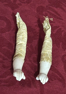 Paar alte antike Ersatz Porzellan Puppenbeine