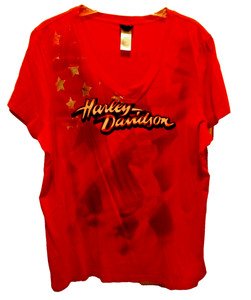 Harley-Davidson Damen XXL (fällt klein aus) Rot V-Ausschnitt mit Sternen Baumwolle Tee Top PA496 EUR 8,57