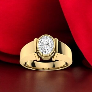 14K Gelbgold Diamant Herren Oval Ring 0,70 Ct Lab Created Verlobungsring