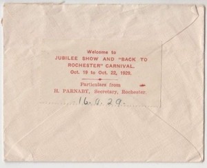 Stamp 1&1/2d KGV on cover Jubilee show & Carnival Rochester Victoria Cinderella
