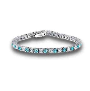 Tennisarmband Weißgold-Finish erstellt Diamant Blautopas Rundschliff Geschenkbox