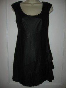 Nanette Lepore GILI ISLAND Leder Ruddle Kleid schwarz 8 US/12 UK
