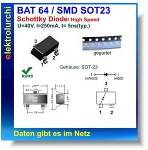 BAT64 – Schottky-Diode – 40 V / 250 mA – ultraschnell – SOT-23 – Infineon, 20St