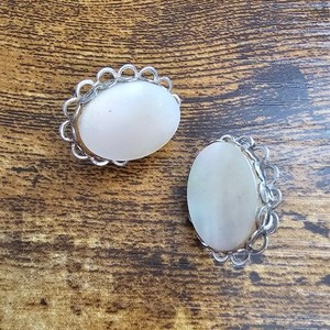 Paar Vintage Ohrclips in ovaler Form milchig weißer Stein