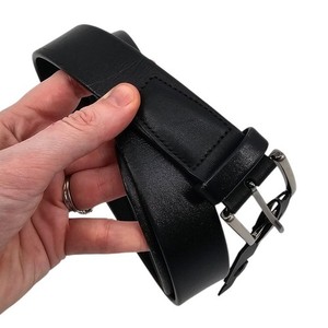 Perry Ellis Portfolio Herren Gr. 36 klassischer schwarzer Ledergürtel mit silberner Schnalle