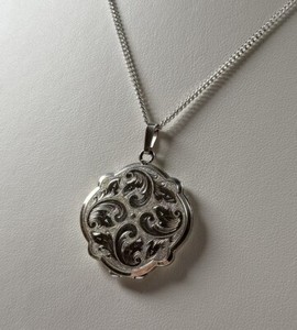 Vintage Locket Pendant 925 Sterling Silver & Necklace Leaf Design 15.7g