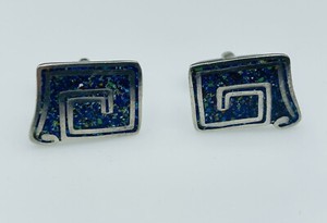 Margot De Taxco Vintage Mexican Sterling Silver Blue Enamel Confetti Cufflinks