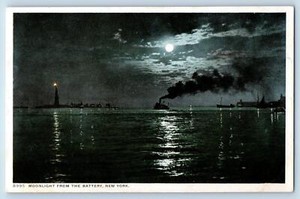 New York City New York NY Postkarte Mondlicht aus der Batterie um 1910 antik