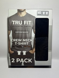 Neu TruFit Herren 2er-Pack weiche Baumwolle ohne Etikett Rundhalsausschnitt T-Shirts Größe M (32-34")