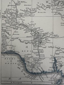 West Africa coast Soudan Guinea Benin Ibo Quorra c. 1850 cerographic color map
