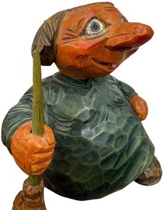 Vintage Otto Sveen handgeschnitzt norwegisch Norwegen Troll Besen Volkskunst signiert