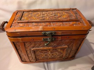 Vintage geflochtener Weidenträger 3-teilig fein signiert chinesisches Teeservice Stövchen Korb EUR 120,16