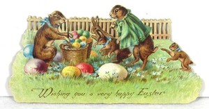 Vintage Stanzform Ostern mit Hasen und bunten Eiern