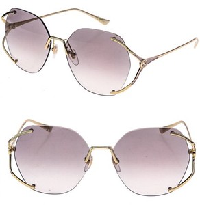 Gucci GG0651S 0651 Gold Flieder Oval Gabel Randlos Metall Sonnenbrille Authentisch 004