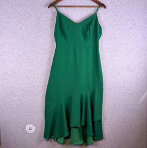 Banana Republic Midikleid Damen 2 zierlich grün V-Ausschnitt hoher niedriger Rüschensaum Party EUR 24,13