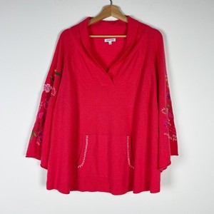 Johnny Was Sedona Wolle Kaschmir Strick Blumen bestickt aufgesetzte Tasche Pullover L