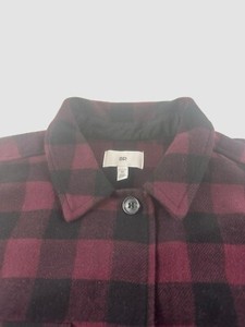 BP Damen Medium weinrot karierte Jacke Langarm Knopfleiste zwei Taschen