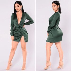 Fashion Nova Sugar Free Dress Hunter Green Satin Mini Dress XL