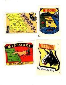 LOT OF 4 VINTAGE WINDOW TRAVEL DECALS, 1950's-60's, MISSOURI (AA700)