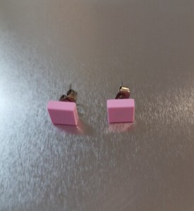 NEU Ohrstecker antiallergisch mit quadratischem Lego-Stein rosa