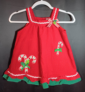 Vintage Mädchen auch selten! Pullover 4T rot Cord Weihnachten grün Borte Kleid Zuckerstange