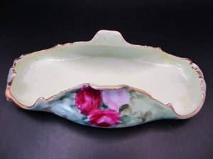 ANTIQUE T & V LIMOGES FRANCE HAND PAINTED ROSES GOLD RUFFLED RIM TRAY BASKET