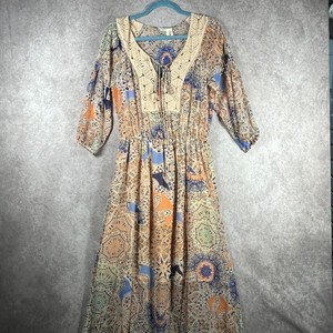 Rachel Pally Maxikleid Damen L Braun Paisley Langarm Bohemian Lang Freizeit