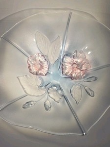 Große Mikasa Kristall Calypso 13" Servier Glas Schale blau rosa Blumen mattiert