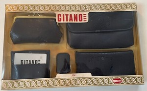 Vintage GITANO schwarze Geldbörse Clutch Schlüsselanhänger Kleingeldbörse Scheckbuch 5 in 1 neu im Karton