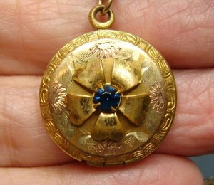 Vintage kleines rundes goldfarbenes geätztes Stern geplatzt mit Strass & Ära Foto Medaillon EUR 69,14