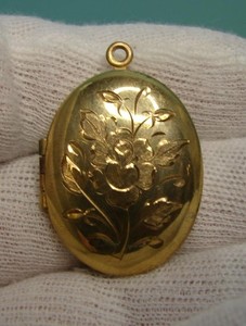 Vintage großes geätztes Jugendstil Flora ovales goldfarbenes Medaillon mit Kette Halskette EUR 164,21
