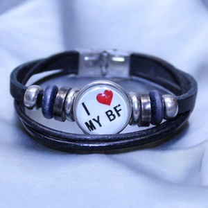 Kunstleder Armband Edelstahl I Heart My BF Vegan