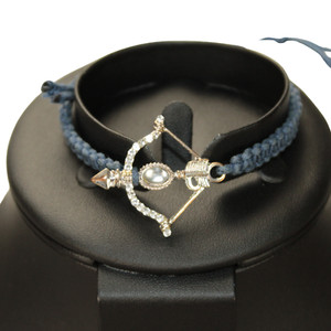Bow Arrow Rhinestone Pendant Silver Tone Blue Woven Cord Bracelet Unisex